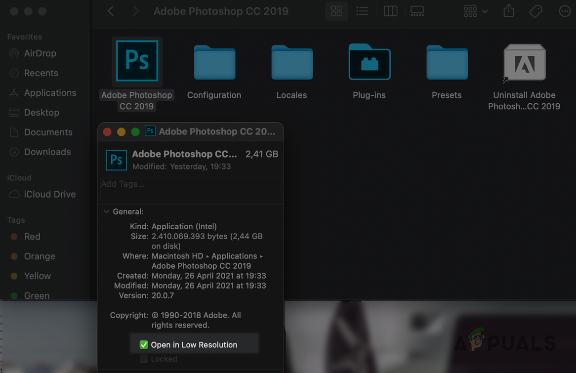 Adobe Photoshop might not export for the web on the Mac if the resolution is not optimal for Photoshop. Here, enabling Mac’s Low-Resolution Option for Adobe Photoshop may solve the problem.