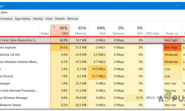 Some Windows 10 users are reporting CPU usage spikes (to almost 100%) usage caused by the State Repository service. This issue seems to affect every CPU threat and makes, games applications and media to stutter. Upon investigating the Event Viewer, some affected users have discovered a lot of consecutive errors related to the State Repository service.
