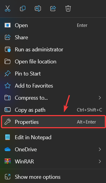 - Right-click the game’s .exe file (usually in your installation folder) and select Properties.