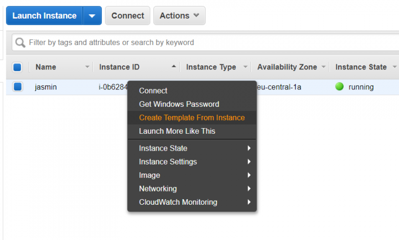 Creating a launch template allows you to create a saved instance configuration that can be reused, shared, and launched at a later time. Templates can have multiple versions. In this article, we will show you how to create a template from the existing Amazon EC2 instance. This article consists of two parts. The first one is about creating a new template from the instance and the second part is about launching a new instance from the template.