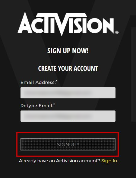 This happens when you already have an Activision account linked with the email address you’re trying to create a new one with. In this case, Activision will give an error and you won’t be able to register the account.
