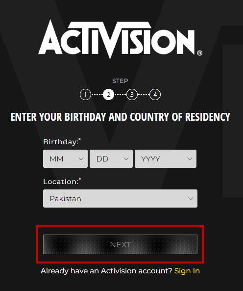 - Go to the Activision sign-up page.