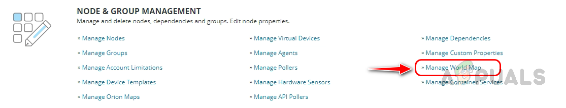 - Click Manage World Map under Node & Group Management.