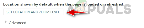 - Click on Set Location And Zoom Level to set up a zoom level for the map.