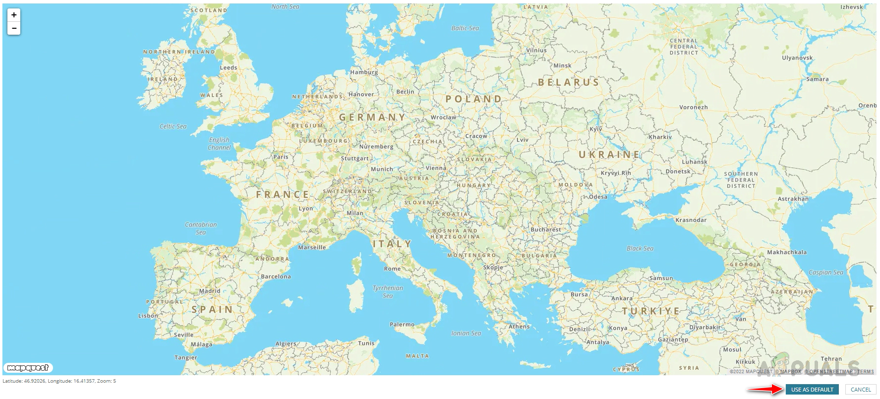 - Zoom the map as required and click on Use As Default.