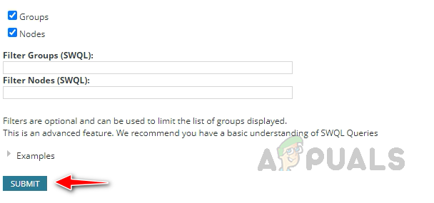 - Select Nodes and Groups and click on Submit. If you would like to exclude any nodes or groups to be displayed on the map, you can use the filter options to exclude them.