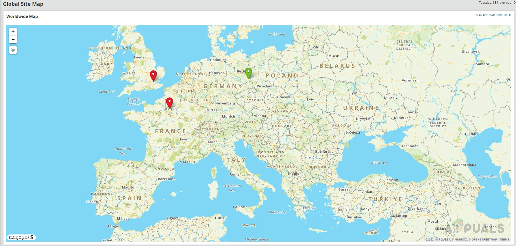 - To place the nodes accurately on the map, get the latitude and longitude values from the Mapquest website on this link. Mapquest provides Solarwinds Worldwide map.