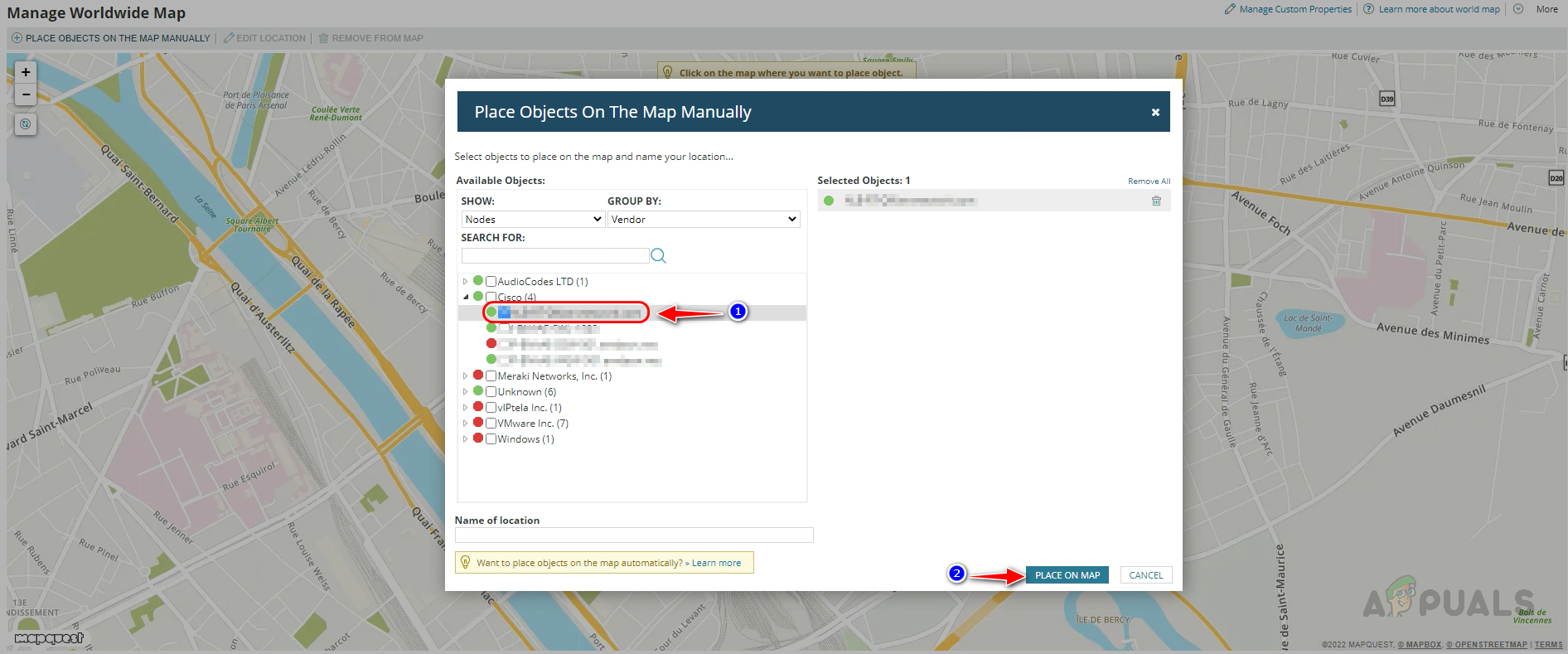 2. Place the Network Devices Manually in Solarwinds Worldwide Map