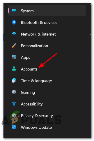 Accessing the Settings sideline menu - Next, from the sideline menu that just appeared, click on Accounts from the list of available options.