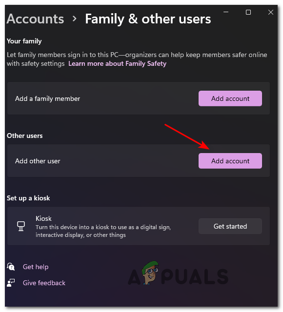 Accessing the Family & Other users tab - Once you’re inside the Family & other users tab, go under Other users (from the same right-hand side menu) and click on the Add account button.