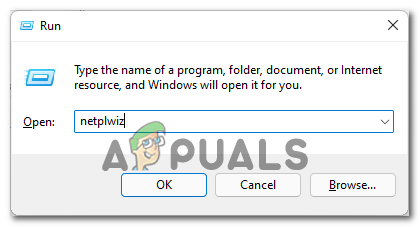 - Press Windows key + R to open up a Run dialog box. Next, type ‘netplwiz’ inside the text box and hit Enter to open up the User Accounts menu. If you are prompted by the User Account Control, click Yes to grant admin access.