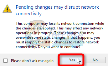 - Windows will prompt for confirmation before creating the switch. Press Yes.