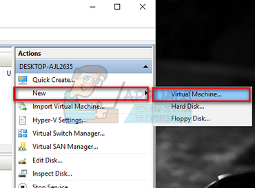 - Select New > Virtual Machine using the right navigation pane on Hyper-V.