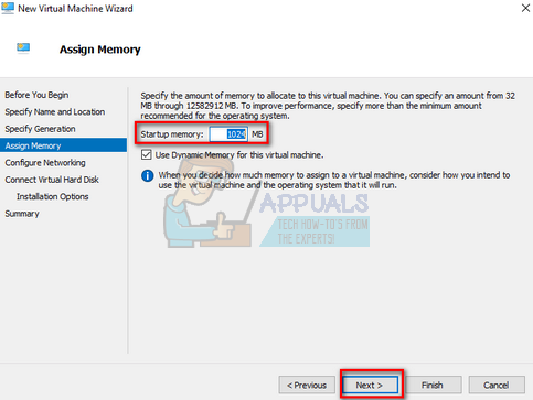 Also, select the option “Use Dynamic Memory for this virtual machine”. This lets your Hyper-V to be flexible by only using the amount of RAM needed at a given time. When the virtual machine starts up, it uses all of the allocated RAM. Later on when only a portion of the total is needed, it releases the free RAM back to the host (getting again more when required).