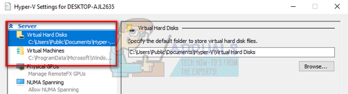 - If you want to change the location where your Hyper-V machine is located, click on Hyper-V Settings present at the right navigation pane.
