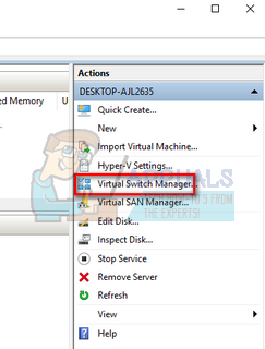 - Select the option of “Virtual Switch Manager” present at the right navigation pane.