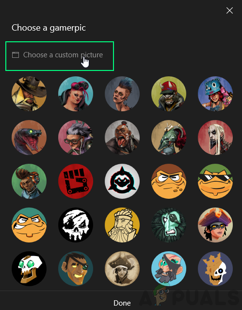 Changing gamerpic - Select Choose a custom picture. This will open an explorer window.