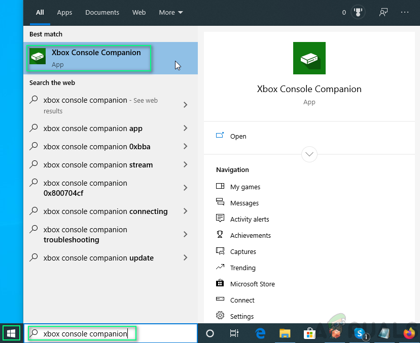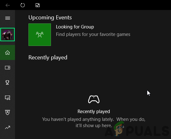 Opening Xbox Console Companion - Click Avatar Circle in the left column to open your Xbox profile.
