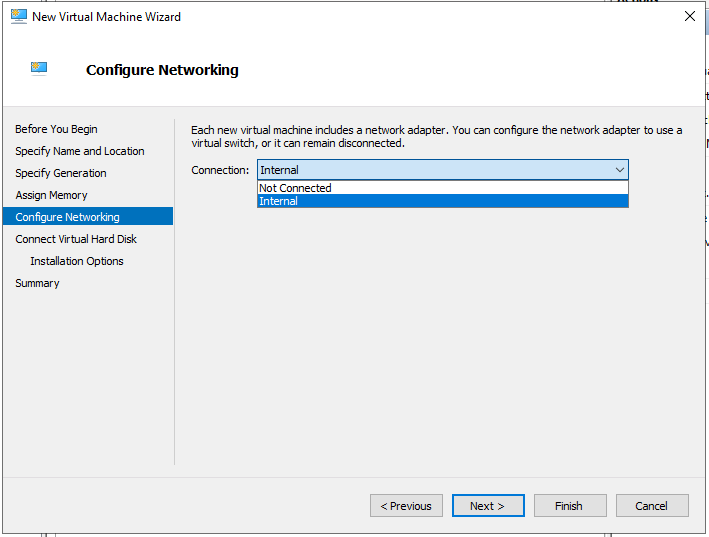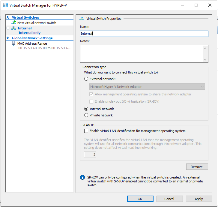 - Under Create virtual switch click Internal and then click Create Virtual Switch