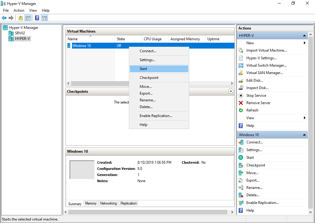 - Open Hyper-V Manager on your Windows 10