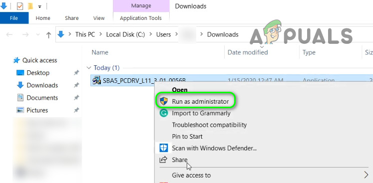 - Then right-click on the downloaded file and select Run as Administrator.