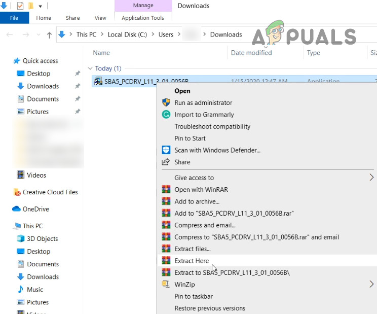 Download the Driver for Sound Blaster Audigy - Then right-click on the downloaded file and extract files to a folder.