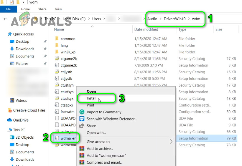 - Then right-click on wdma_emu.inf and in the menu shown, choose Install.