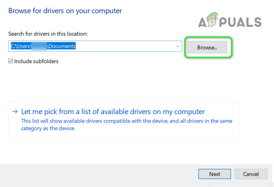 Browse My Computer for Drivers - Now click on the Browse button and navigate to the extracted folder at step 4.