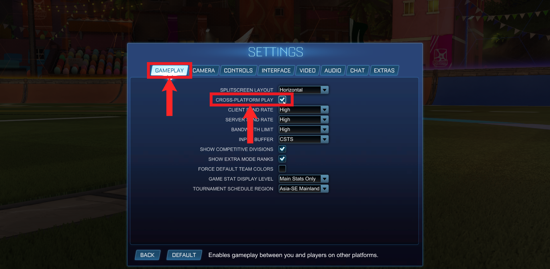 Under the Gameplay tab in Settings, uncheck the Cross-Platform Play checkbox - Lastly, select Back to save your settings.