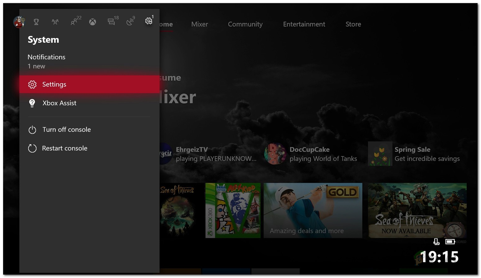 - First of all, hit the Xbox button on your controller and go to the System tab.