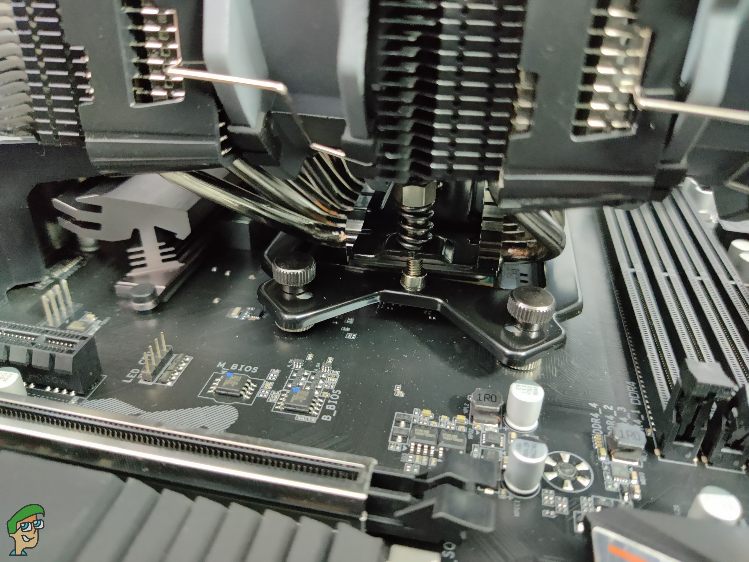 We recommend installing the R1 after taking your motherboard out of your case as it gets a little tricky when mounting the fans back on the heatsink after you’ve just screwed in the cooler on the brackets.