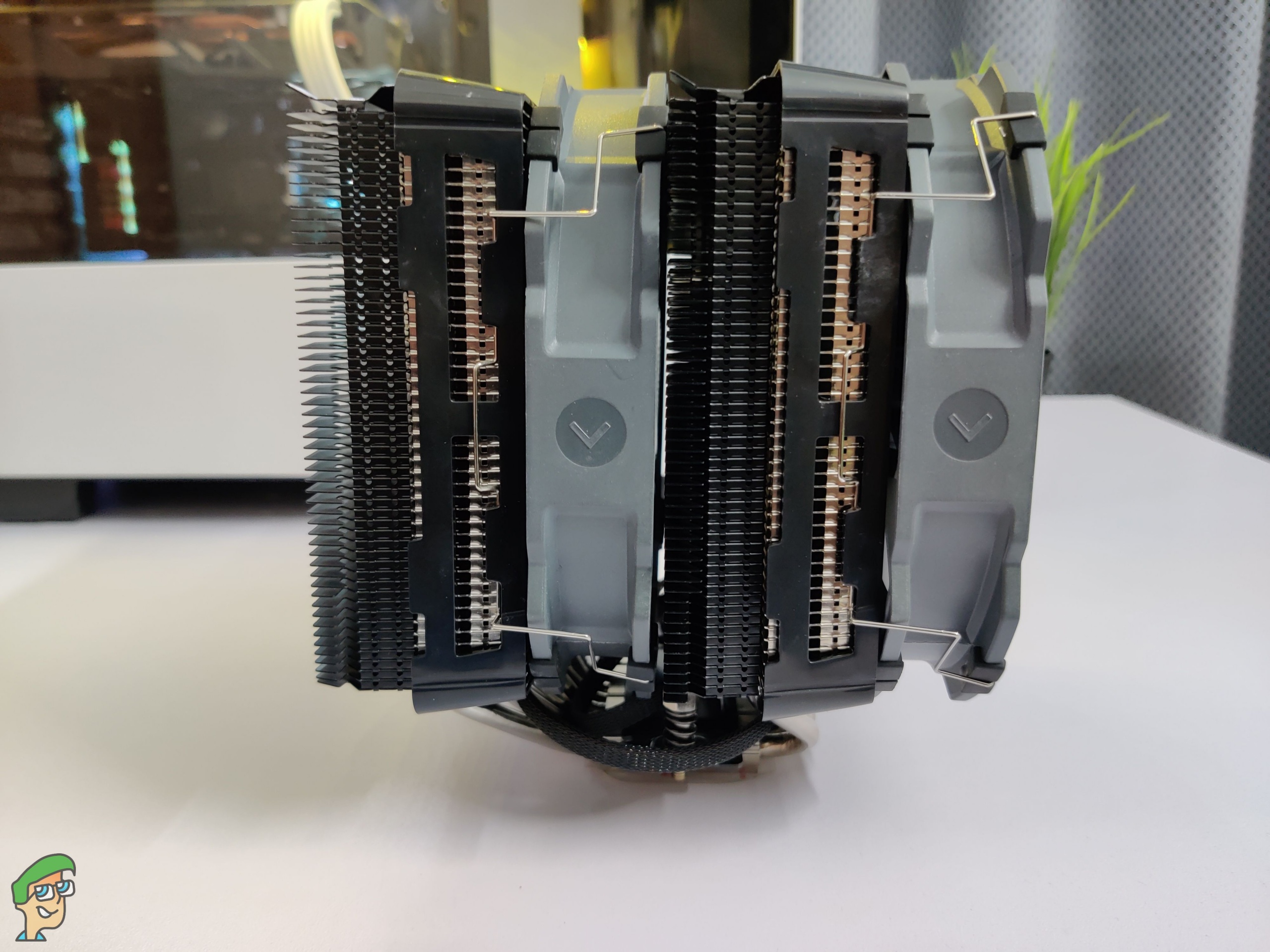 We don’t want to do injustice to this cooler by not talking about its design. The R1 Ultimate makes great use of the tried and true dual-tower design. As such, it has dual heatsinks that are connected with seven 6mm heat pipes. Both of these heatsinks make use of two sets of fins that efficiently push air out of the heatsink.