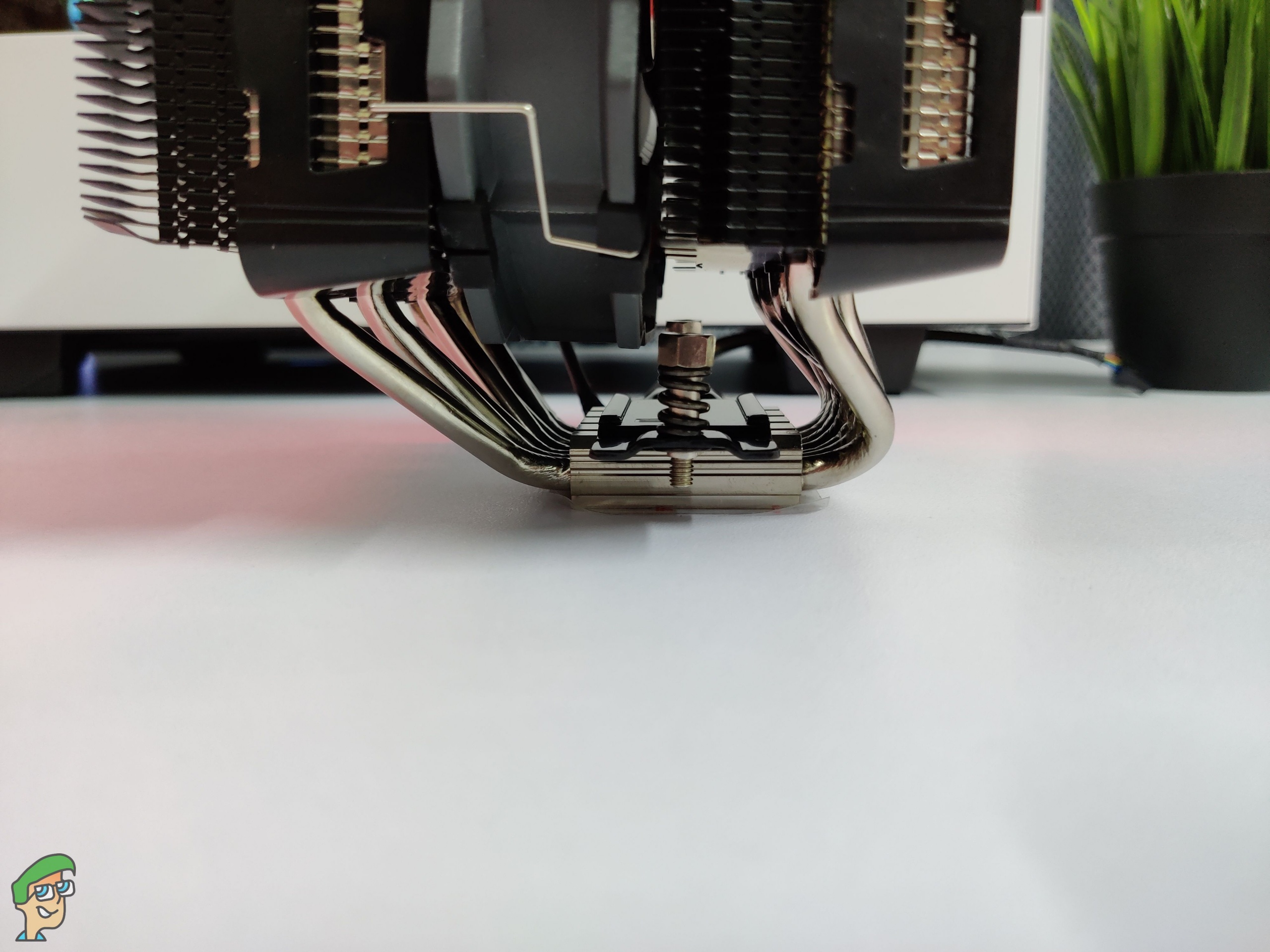 The base of the R1 Ultimate is finely machined and has a consistent smooth texture. However, it does lack a polished mirror finish. To be quite honest, it’s not that big of a deal. The heat pipes have an even spacing. Other than that, the base is slightly offset. Once the fans are installed, you’ll see that it lands dead center. Supposedly, this is for better heat dissipation.