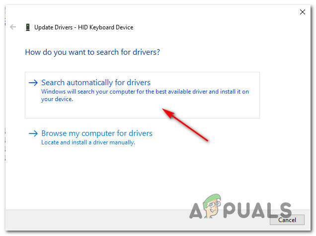 Searching automatically for the updated driver version - After the installation is finished, reboot your PC and test CS:GO again to see if the error still occurs.