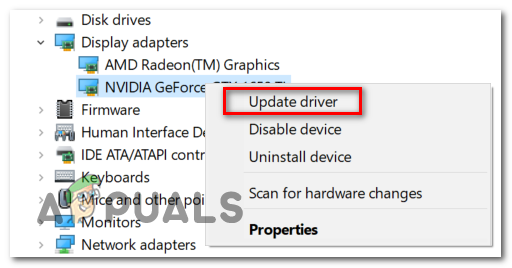 - After you’ve extended the menu, right-click the GPU driver that you want to update, and click on Update driver.