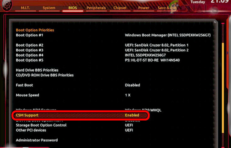 If the CSM option is not available in the MSI BIOS, update the BIOS of your system. If updating does not work, reset the MSI BIOS to the defaults.