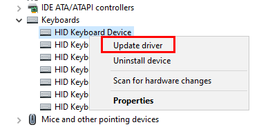 - In Device Manager, right-click on the keyboard driver and select Update Driver.
