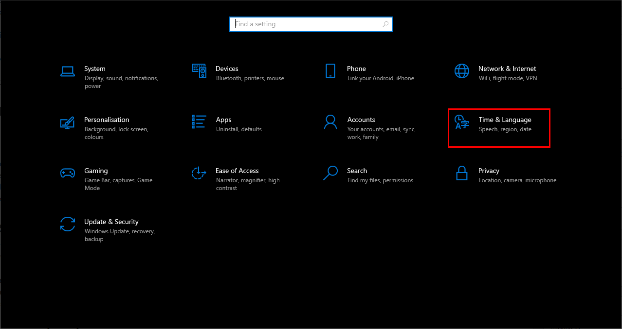 - Open Settings and navigate to Time & Language.