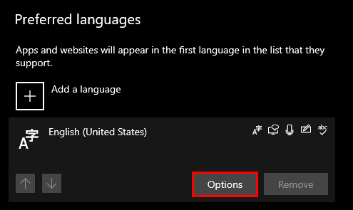 - Under the Preferred languages section, click on Options next to your current language.