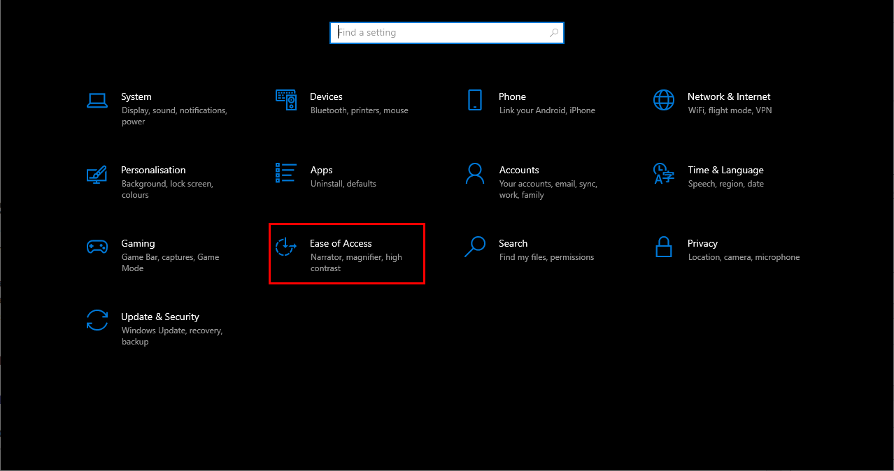 - From the Settings menu, access Ease of Access.