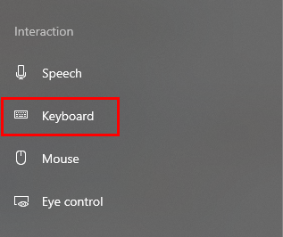 - In the left panel, click on Keyboard located within the Interaction section.