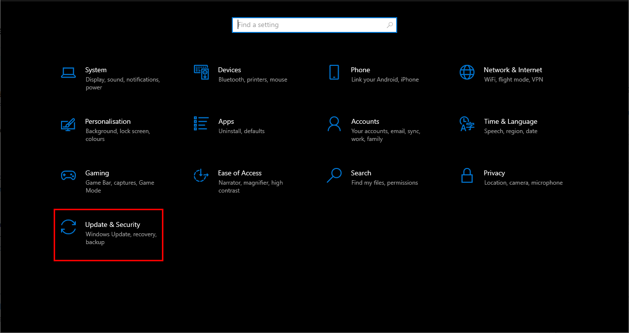 - Navigate to Settings by pressing Windows + I, then select Updates & Security.