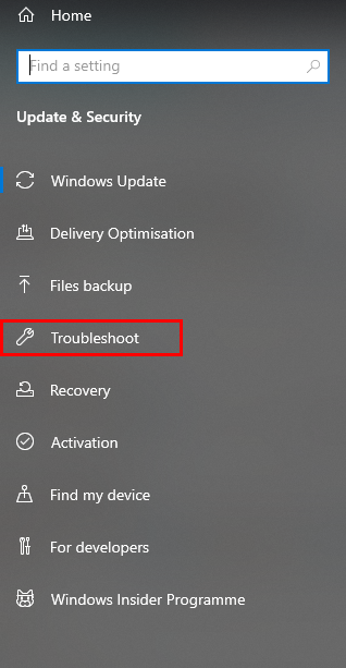 - From the menu on the left, click on Troubleshoot.