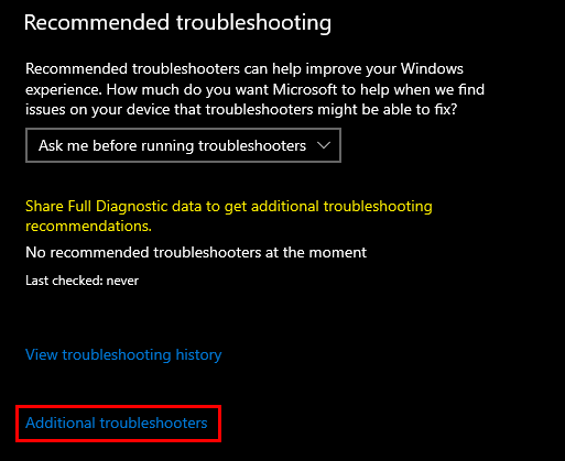 - Continue by selecting Additional troubleshooters to the right.