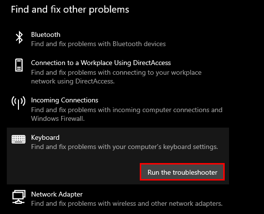 Solution 1: Run the Keyboard Troubleshooter