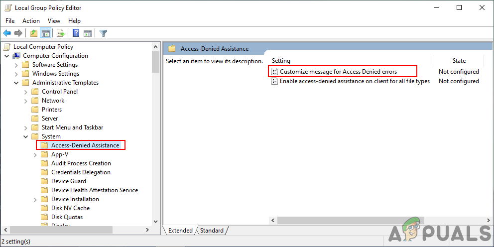 Method 1: Customizing Access Denied Message by Using Group Policy Editor