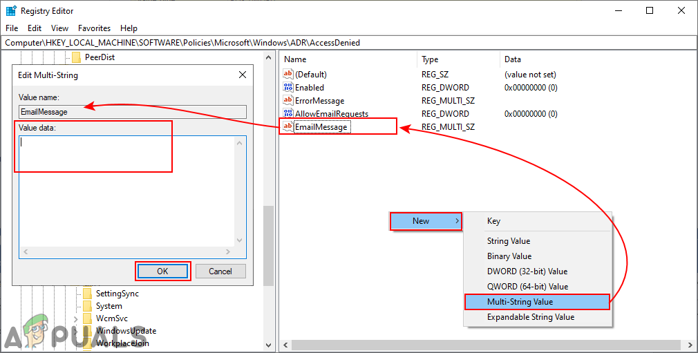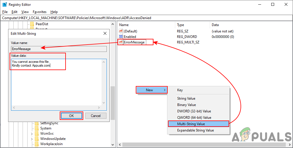 Creating Enabled value - Right-click again to choose New > Multi-String Value and name it “ErrorMessage“. Double-click on it and write your customized message in it.