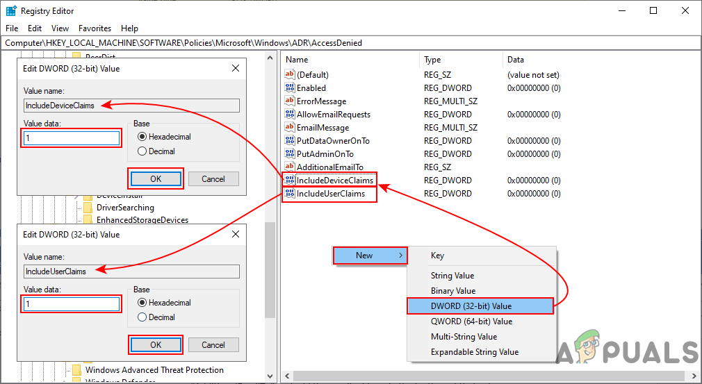 Adding additional email recipients - Further, you can create more values for email settings. You can create two more values by choosing the New > DWORD (32-bit Value) option. For including device claims in email, name the value as “IncludeDeviceClaims” and set value data to 1. For including user claims in email, name the value as “IncludeUserClaims” and set value data to 1.