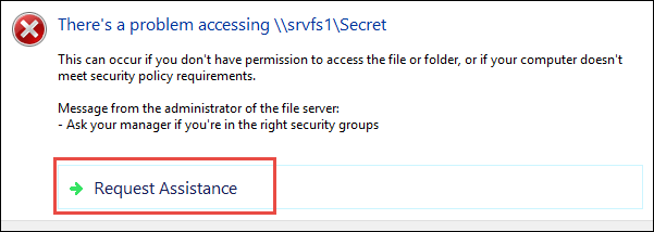 The default access denied message will just hint about why the user can not access the program or folder. However, the owner can further provide additional text and assistance link to the access denied message. By doing this you can let the user know who they should contact and why the access is not allowed in your own words. It also provides additional options for the access denied message that users can use to help the standard users.