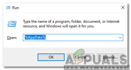 - Press Windows key + R to open up a Run dialog box. Next, type ‘%appdata%’ and press Enter to open up the AppData folder (that’s hidden by default).